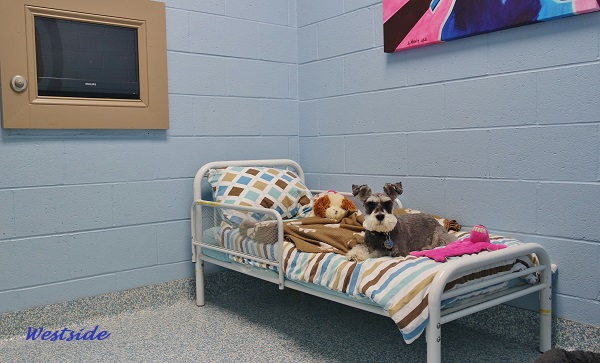 Talk about luxury, our Hotel Suites are the life for the pampered pooch. Each dog gets their own private suite (multiple dogs in the same family can share.) Suites are complete with rugs, a full-size toddler bed and, of course, a flat-screen TV on the wall. All suites have large windows for seeing what is going on. The suites provide a quieter environment. This is perfect for the ultimate spoiled pooch or for the a dog that is very nervous or easily stressed. We are proud to offer a wide variety of movies such as; "Lady and the Tramp", "Air Bud", "The Fox and the Hound", "101 Dalmatians" and much more.